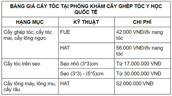 Chi phí cấy đường chân tóc trán nói riêng và các khoản chi phí khác nói chung tại phòng khám luôn được niêm yết theo đúng quy định và được công khai minh bạch với khách hàng.